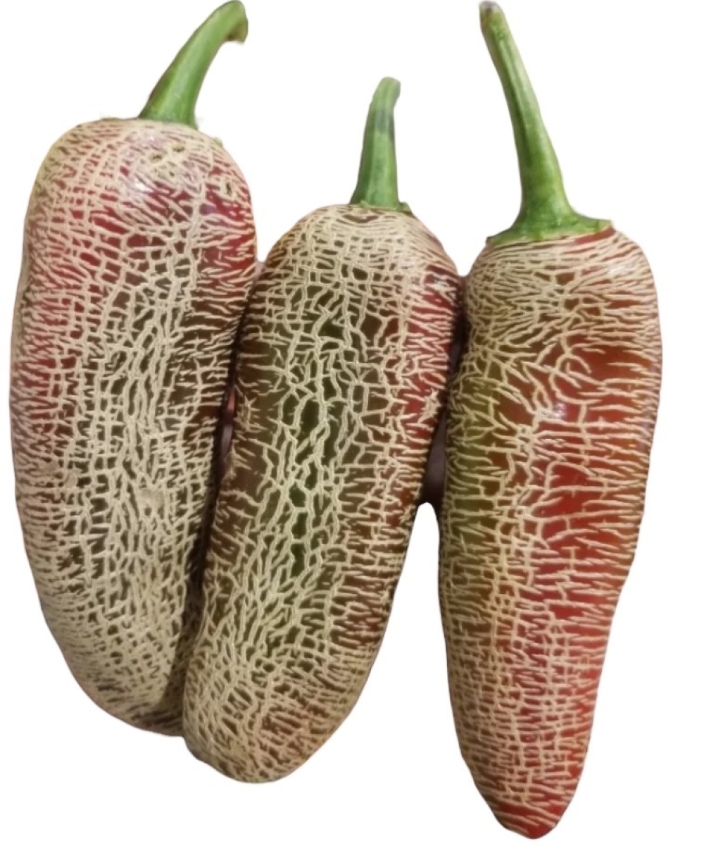 Lo JALAPEÑO FARMER'S MARKET POTATO, noto anche come Farmer's Market Jalapeño o Potato Jalapeño, è una varietà particolare di peperoncino appartenente alla specie Capsicum annuum. Questa varietà si distingue per l'aspetto unico dei suoi frutti, caratterizzati da una marcata corking (cicatrizzazione) che conferisce loro un aspetto simile alla buccia di una patata o di un melone cantalupo.