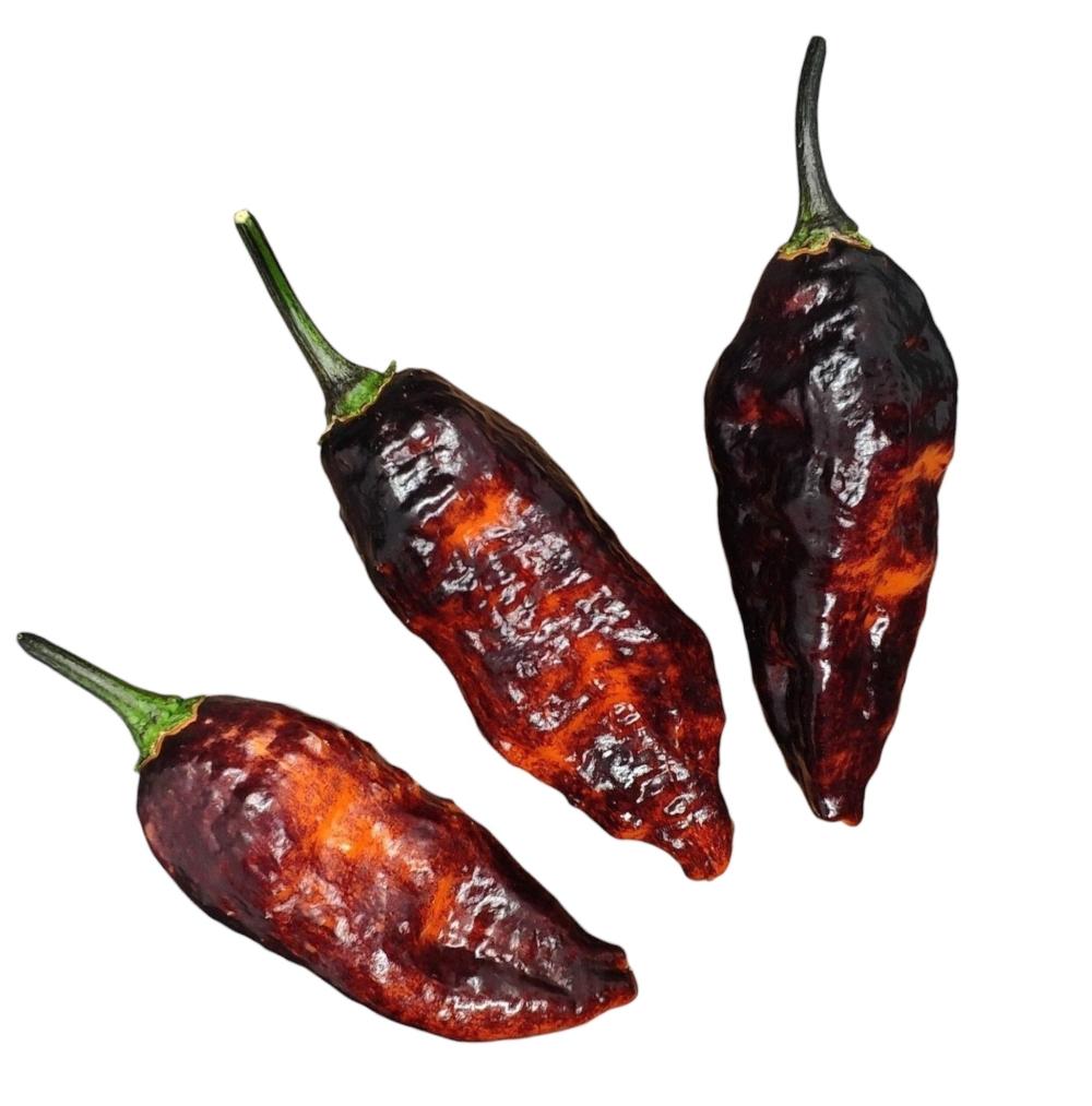 Il peperoncino Hallow’s Eve è una varietà appartenente alla specie Capsicum chinense, ottenuta dall’incrocio tra il Bhut Jolokia e la Pimenta da Neyde. Questa varietà è particolarmente apprezzata per l’aspetto molto caratteristico dei suoi frutti e per la sua elevata piccantezza.